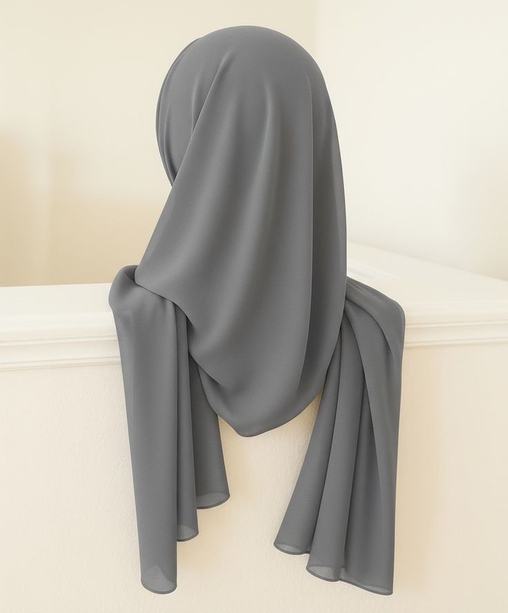 Minimalist, modern, and perfectly neutral. The Slate Shadow Georgette Hijab is the ultimate “cool-tone” essential for the Rangshung collection, offering a sleek alternative to black and navy.